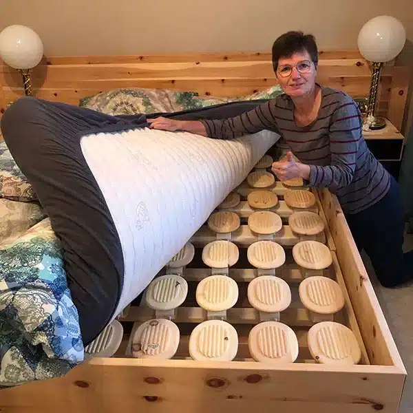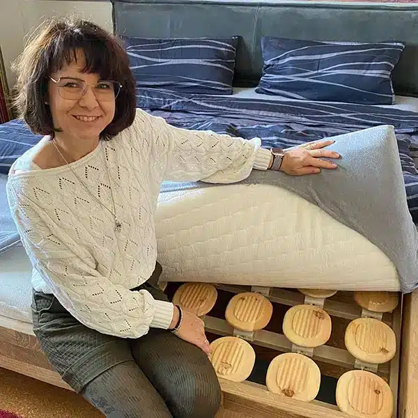 „Seitdem wir das 3D-Tellersystem haben und zwei individuell abgestimmte Matratzen, können wir wirklich viel besser schlafen. Die Schlafqualität hat sich zu 100 Prozent verbessert.„