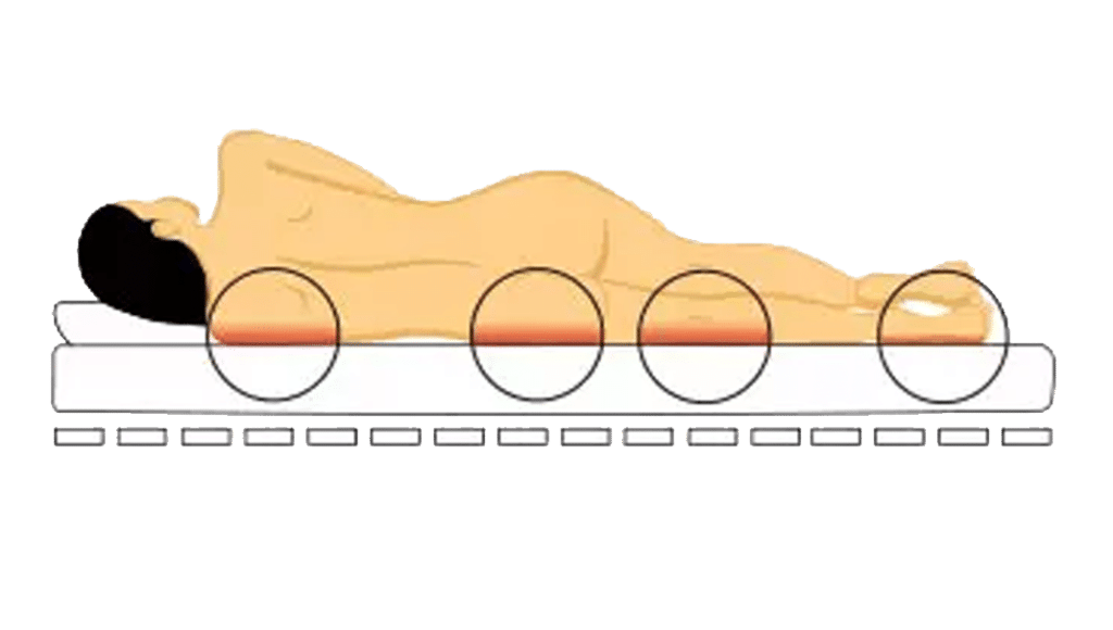 Schulter und Becken können nicht einsinken. Die Folge: Druckstellen, eingeschlafene Arme und ständiges Wälzen.